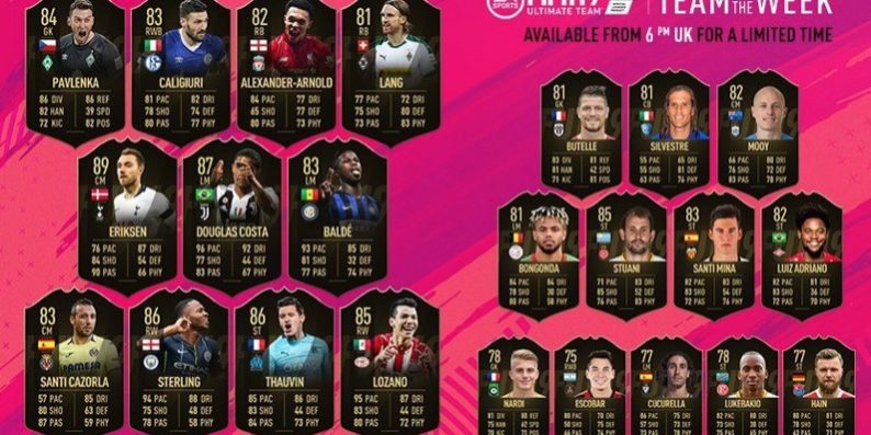 L’Équipe de la Semaine, ou TOTW pour les intimes, est une liste de 23 joueurs sélectionnés par EA Sports pour leurs performances dans leurs championnats respectifs pendant la semaine écoulée. Les matchs en équipe nationale ou dans les coupes continentales comme la Ligue des Champions ne rentrent pas en ligne de compte ici.